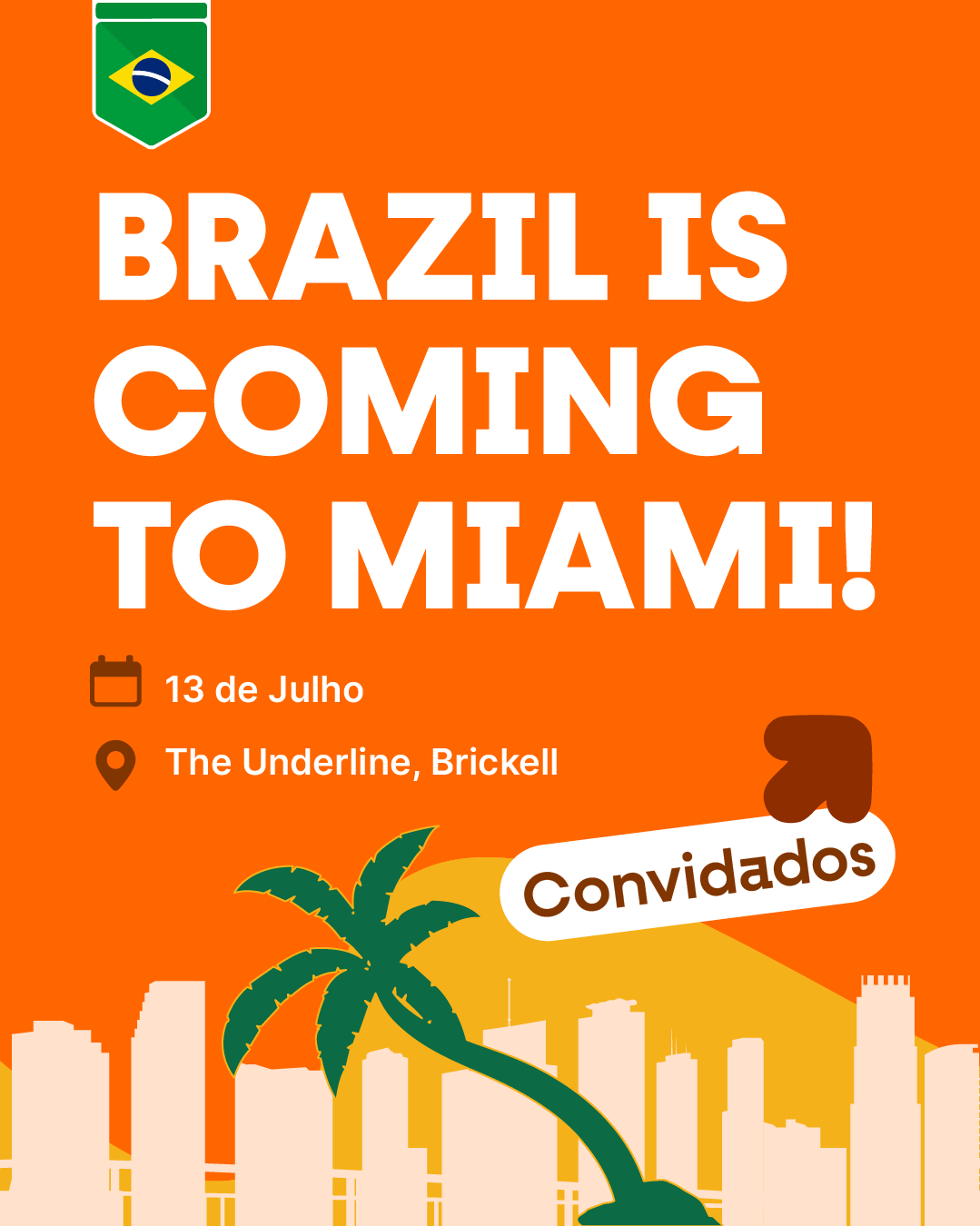 Miami está prestes a vibrar com o sabor e o ritmo brasileiro! Junte-se a nós no Brasil Day Miami, um festival completamente gratuito que transformará o Brickell em uma celebração brasileira colorida e alegre. Junte-se a milhares que se reunirão nesta área onde o coração da comunidade brasileira já bate forte.